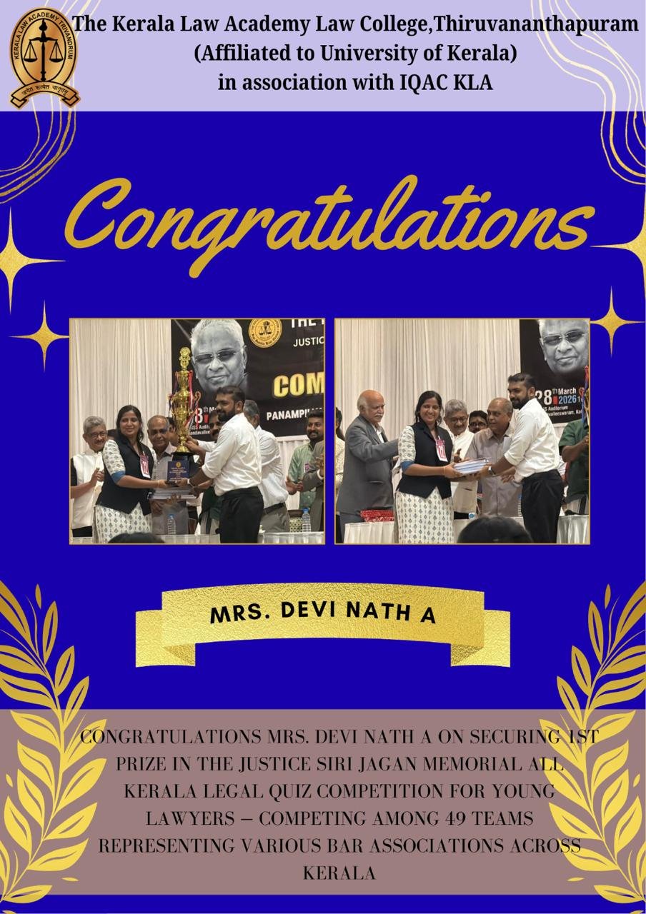 Event Details: Established in 1966, Kerala Law Academy (KLA) is a seat of excellence in legal education, consultancy, research, and pioneering law reforms. The Academy’s prestigious institute, “the Kerala Law Academy Law College” is located in Trivandrum, the capital city of Kerala, India